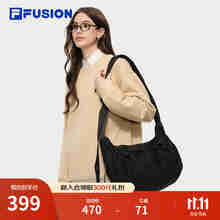 FILA FUSION斐乐潮牌情侣款挎包2025秋新款时尚休闲单肩包懒人包 深黑-BK XS