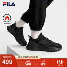 斐乐(FILA)官方火星2加绒复古跑步鞋女鞋冬季新款黑色老爹鞋运动休闲鞋 黑-BK 35.5