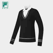 FILA 斐乐官方女子编织衫2025冬季新款高尔夫运动假两件套头毛衣 深黑-BK S 160/80A/S
