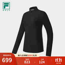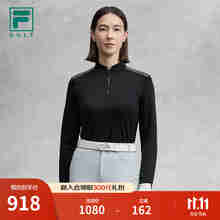 FILA 斐乐官方女子针织长袖衫2025冬新款高尔夫运动防晒半拉链长T 深黑-BK S 160/80A/S