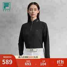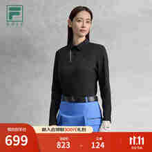 FILA 斐乐官方女子针织长袖衫2025秋新款高尔夫运动半拉链防晒长T 深黑-BK M 165/84A/M