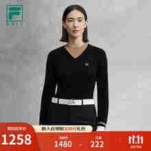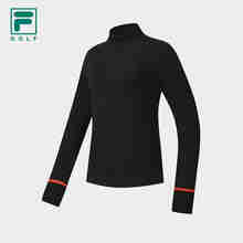 FILA 斐乐官方女子针织长袖衫2025冬新款高尔夫运动小高领修身长T 深黑-BK S 160/80A/S