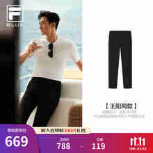 FILA 斐乐王阳同款男士针织长裤2025夏季新款凉感防晒基础休闲直口裤 正黑色-BK 2XL 185/92A/XXL