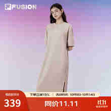FILA FUSION斐乐潮牌女子针织连衣裙2025夏新款宽松凉感防晒T恤裙 橙米黄-BG M 165/84A/M
