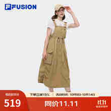 FILA FUSION斐乐潮牌女子梭织背带裙2025夏季新款休闲宽松工装裙 沙粟棕-BG XS 155/58A/XS