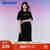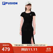 FILA FUSION斐乐潮牌女子针织连衣裙秋新款简约修身长款裙子 正黑色-BK XS