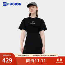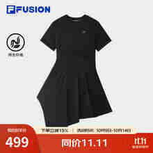 FILA FUSION斐乐潮牌女子针织连衣裙2025夏季新款时尚不规则T恤裙 正黑色-BK XS 155/76A/XS