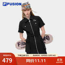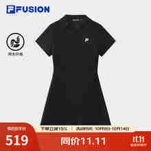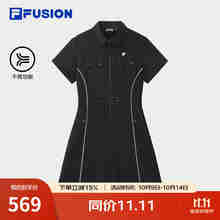 FILA FUSION斐乐潮牌女子连衣裙2025夏新款时尚休闲宽松翻领裙子 正黑色-BK XS 155/76A/XS