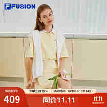 斐乐(FILA) FUSION潮牌女子连衣裙秋收腰POLO领时尚休闲针织裙 橙米黄-BG S (160)