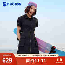 FILA FUSION斐乐女子梭织连衣裙秋季新款干爽工装裙国家队同款 正黑色-BK S