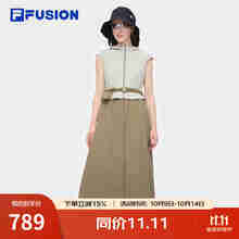FILA FUSION斐乐潮牌女子连衣裙2025夏季新品拼接休闲时尚连衣裙 深麦卡其-DK M 165/84A/M