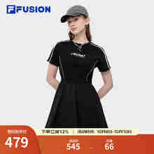 FILA FUSION斐乐潮牌女子针织连衣裙2025夏季新款时尚短袖连身裙 正黑色-BK XS 155/76A