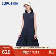 FILA FUSION斐乐潮牌女子梭织连衣裙2025夏新款时尚休闲干爽裙子 正黑色-BK S 160/80A/S