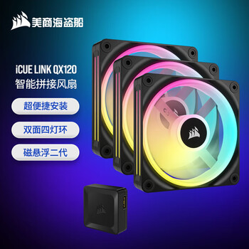 美商海盗船iCUE LINK QX120 RGB 12cm/QX140 RGB 14cm 机箱风扇 四灯环 RGB 智能拼接 带控制器 黑色/白色 QX120 3颗装 黑色 12CM