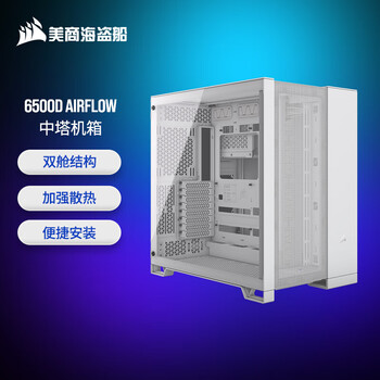 美商海盗船6500D AIRFLOW/6500X 中塔机箱 双舱结构 无立柱海景房 玻璃面板 360水冷机箱 黑色/白色 6500D AIRFLOW 白色