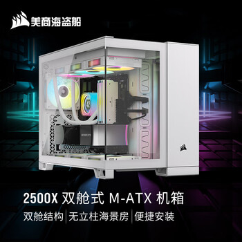 美商海盗船(USCORSAIR)2500X M-ATX机箱 黑色/白色 钢化玻璃 9风扇位 支持360冷排 42cm显卡 双舱结构 无立柱海景房 2500X 白色