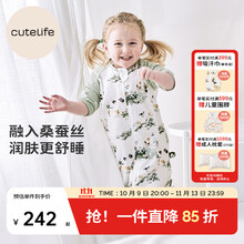 Cutelife【竹绸】婴儿蚕丝睡袋双层短袖春夏宝宝睡袋儿童防踢被透气凉感 小鸡游园会 室温26度以上 80码 /身高65-85cm【6-18个月】