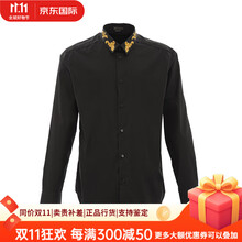 范思哲(VERSACE)奢侈品男装衬衫男商务休闲巴洛克镶领边长袖衬衫 黑色 42