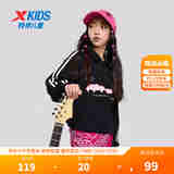 特步童装儿童套头卫衣女童中大童2025春季新款修身显瘦翻领套头卫衣 纯正黑 130