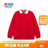 特步【商场同款】童装儿童套头卫衣女童中大童2025新年款翻领套头卫衣 宝钻红 150