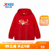特步【商场同款】童装儿童连帽卫衣女童中大童2025年新年款套头卫衣 宝钻红 170