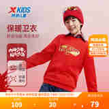 特步儿童童装套头卫衣男女童烫金新年印花轻量蓬松保暖圆领加绒套头卫 砂岩红 160 cm