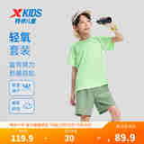 特步儿童短袖针织套装夏季男女童小中大童吸湿速干柔软舒适运动套装 夏日绿 175