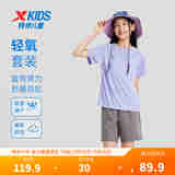 特步儿童短袖针织套装夏季男女童小中大童吸湿速干柔软舒适运动套装 浅云紫 160