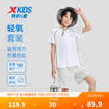 特步儿童短袖针织套装夏季男女童小中大童吸湿速干柔软舒适运动套装 珍珠白 130