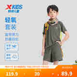 特步儿童短袖针织套装夏季男女童小中大童吸湿速干柔软舒适运动套装 尘灰色 120