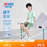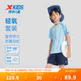 特步(XTEP)儿童短袖针织套装夏季男女童小中大童吸湿速干易清洗透气运动套装 浅水色 160