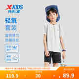 特步儿童短袖针织套装夏季男女童小中大童吸湿速干柔软舒适运动套装 牡蛎灰 120