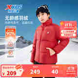 特步儿童【小暖炉】羽绒服冬季男童小中大童挡风护颈保暖舒适百搭外套 宝钻红-绒子含量85% 160 含绒量133g