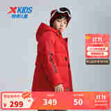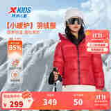 特步童装儿童羽绒服男女童三防连帽高领防风门襟防风保暖加厚羽绒服 宝钻红-绒子含量55% 100 充绒量71g