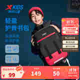 特步儿童书包男女童新款撞色大容量科学护脊开学书包笔袋双肩包套装 黑红(含笔袋) 均码