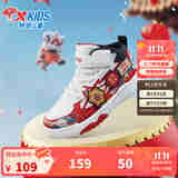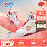 特步【商场同款】童鞋儿童板鞋男童中大童2025年新年装防滑旋钮扣板鞋 茶白色/团队红 37