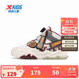 特步【商场同款】童鞋儿童板鞋男童中大童2025年新年装防滑旋钮扣板鞋 茶白色/团队红 33