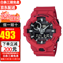 卡西欧(CASIO)男表G-SHOCK防水多功能潮流运动大表盘男表 骚红GA-700-4A