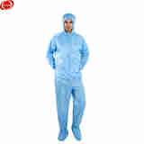 谋福 静电四连体服无尘服洁净服 车间实验室工作连帽连体服 蓝色 S