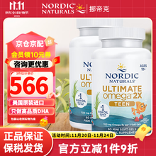 Nordic naturlas挪威小鱼深海鱼油儿童dha少儿Omega3青少年学生记忆力软胶囊进口 12-18岁青少年终级2倍高含量胶囊60粒*2瓶