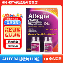 JD快递 美国Allegra 24小时过敏缓解片过敏性鼻炎皮肤过敏花粉过敏美国抗过敏药 猫毛过敏宠物 Allegra过敏片55粒*2瓶