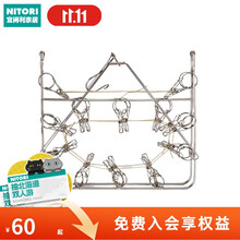 NITORI宜得利家居 晒袜子架防风宿舍多功能不锈钢折叠衣架24P 银色
