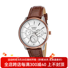 CASIO卡西欧手表 休闲时尚男士棕色皮带银色多功能表盘手表 防水腕表 BEM-302L-7AVDF