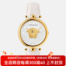 VERSACE范思哲手表 时尚休闲气质美杜莎石英女表 皮带防水腕表 送女友礼物 白色皮带VECO01320