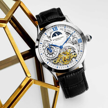 施图霖(Stuhrling)施图灵美国进口571系列自动机械手表男士休闲50米防水44mm送男友 银色镂空571.33152 44mm