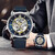 Stuhrling施图灵3920进口欧美手表男士防水镂空自动机械表商务休闲腕表礼物 蓝色表圈-日月星象双时区 3920.3