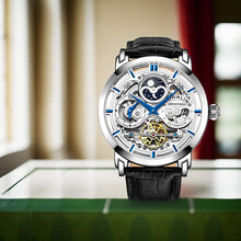 Stuhrling 施图灵大表盘手表男进口欧美自动机械镂空双时区送男友腕表 银色-日月星相大师 -47mm 371.01
