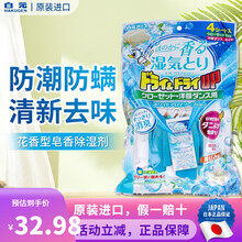 白元(HAKUGEN)日本进口 白元除湿剂除湿盒防潮防霉干燥剂衣都爽衣无畏防虫防蛀 衣柜用白色皂香4枚