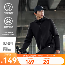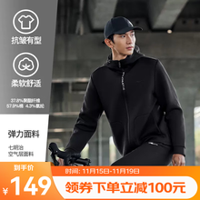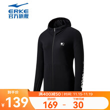 鸿星尔克外套男春季男士针织运动服连帽开衫休闲骑行卫衣夹克男款 正黑 M