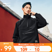 鸿星尔克鸿鹄丨风衣男春秋男士休闲国潮宽松半开襟梭织套头上衣男 正黑 L